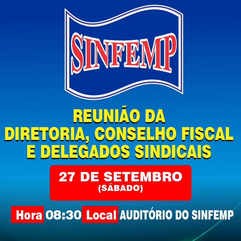 A Direção do SINFEMP- Sindicato dos Funcionários Públicos Municipais de Patos e Região, realiza reunião neste sábado, dia 27 de setembro de 2025, a partir das 08:30 horas, em sua sede, localizada na Rua Dezoito do Forte, 140, Santo Antônio, Patos PB.