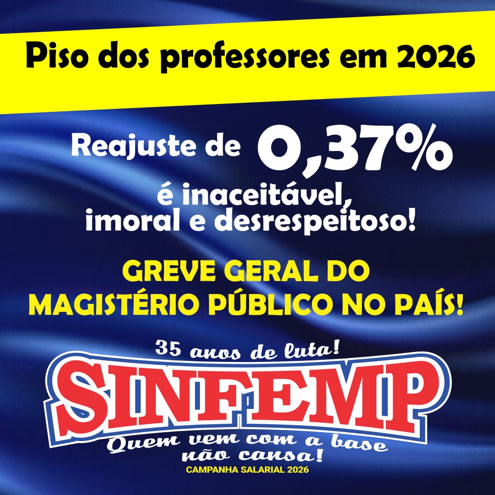 O SINFEMP – Sindicato dos Funcionários Públicos Municipais de Patos e Região, repudia o anúncio do reajuste do piso nacional do magistério no percentual de 0,37% que não assegura sequer a inflação do período e que irá se juntar as demais entidades sindicais, no sentido de pressionar o Ministério da Educação e o governo Lula por um reajuste decente.