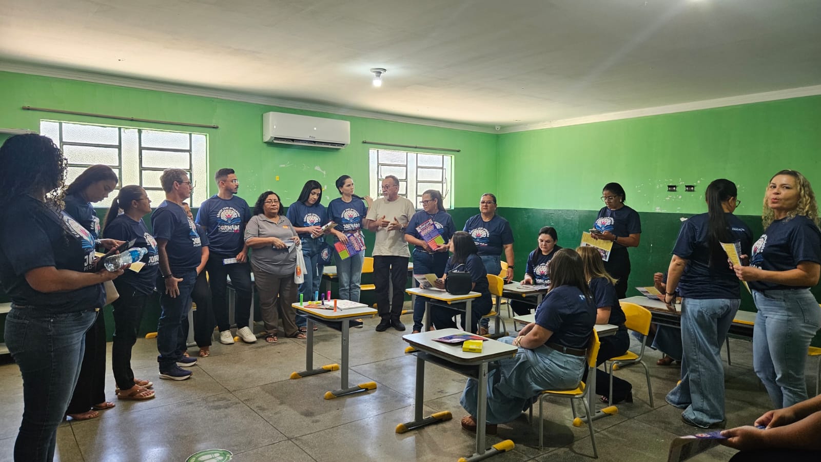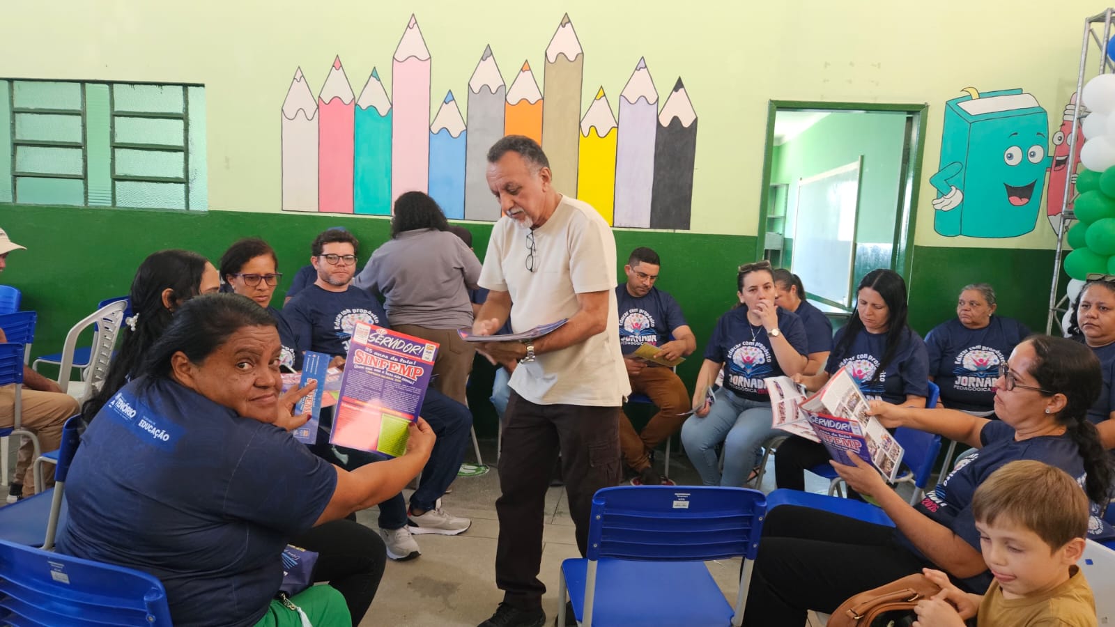 A luta pela jornada de seis horas corridas, o reajuste do piso dos professores, a luta pela aprovação do piso nacional para os garis, auxiliares de serviços, merendeiras, técnicos administrativos, motoristas, vigias e demais servidores de apoio da educação, também foi discutido com os servidores.