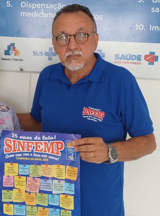 O SINFEMP – Sindicato dos Funcionários Públicos Municipais de Patos e Região, fará no dia 31 de março, terça -feira, o lançamento da Campanha Salarial 2026, que tem como tema: Quem vem com a base não cansa!