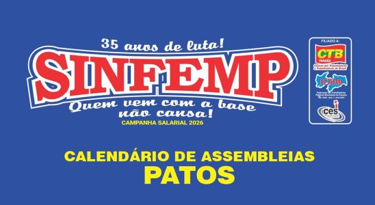 Visando a mobilização da base para a Campanha Salarial 2026, no dia 31 de março, o SINFEMP irá realizar 5 assembleias com os servidores de Patos, precisamente nos dias 26…